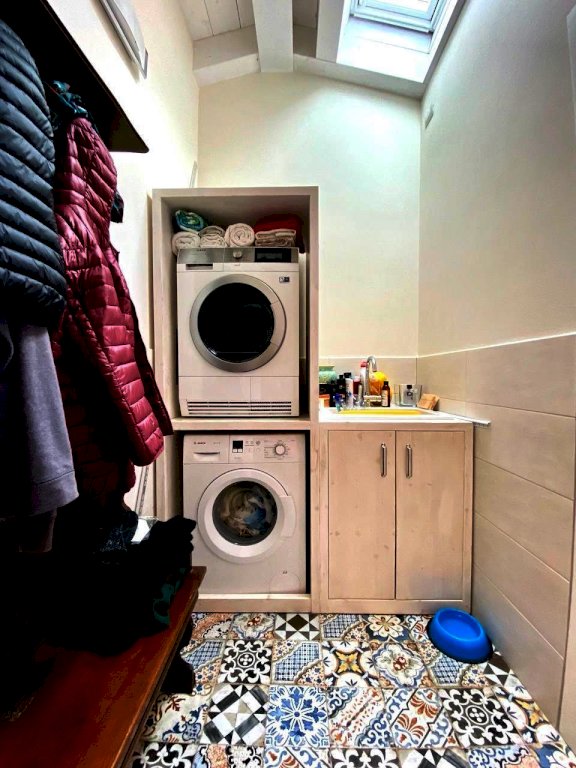 al PIANO PRIMO mansardato (ma dalle altezze più che comode) camera matrimoniale, grande sala da bagno con vasca e piccolo balconcino, antibagno adibito a lavanderia, ampia camera matrimoniale con terrazza vivibile.