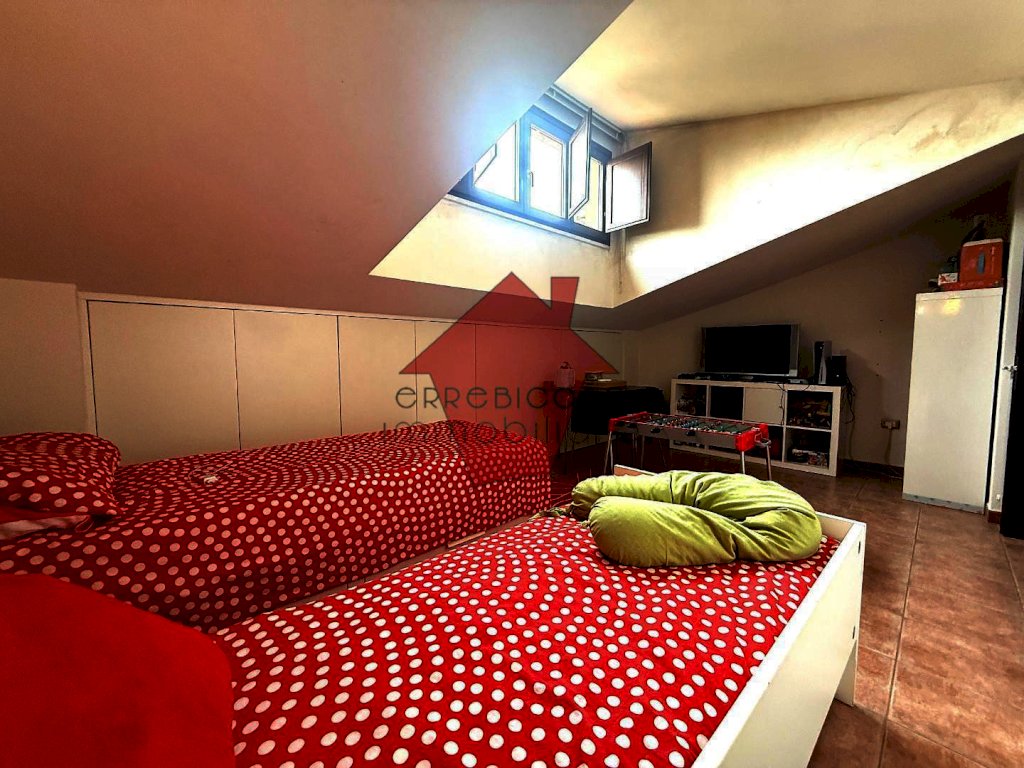 Disposto du due piani principali è composto da ingresso in soggiorno con camino. disimpegno, bagno con doccia, ripostiglio-lavanderia, ampia cucina abitabile con affaccio su loggia e piccolo resede. Al piano primo è composto da due camere matrimoniali con loggia, bagno finestrato con vasca e scala di accesso al piano mansarda con ulteriori due camere da letto. Completa la proprietà il garage al piano terra.