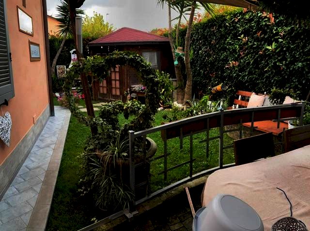 Vecchiano, località Migliarino (PI), a soli 5 Km dal mare, zona tranquilla e residenziale, disponiamo in vendita questa bella villetta a schiera d'angolo con buone rifiniture, tutte extra capitolato La villetta è sviluppata su 2 livelli + mansarda, ha l'entrata indipendente tramite il giardino su 2 lati di proprietà di circa 100 mq. dove è presente in esso una casina di legno come deposito attrezzi per il giardino stesso. Al piano terra è composta dal soggiorno, cucina abitabile, ripostiglio e il primo bagno, tramite la scala interna si accede al primo piano dove troviamo in reparto notte composto da 3 camere da letto delle quali una matrimoniale e le altre 2 camerette con balcone e il secondo bagno con bellissima vasca idromassaggio angolare, sempre tramite la scala interna si accede alla mansarda adibita a quarta camera oppure a studio, immobile molto ben rifinito e interessante. € 360.000 trattabili rif. 8