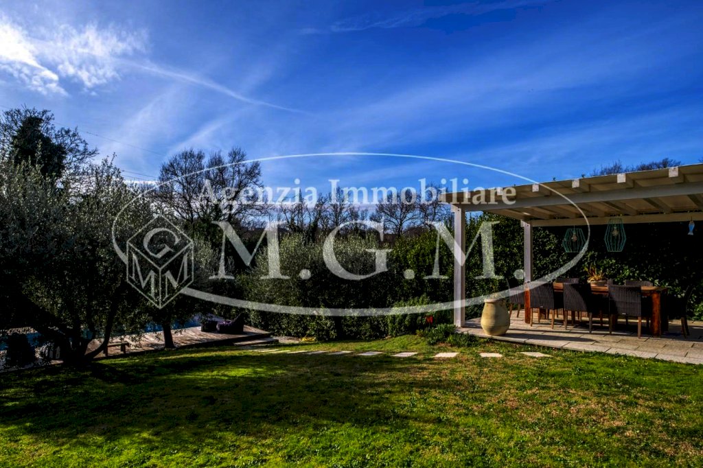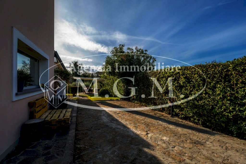 La villa è circondata da giardino e parco su tre lati, curato e ben organizzato, con piante da giardino, olivi, ed una bellissima siepe lungo tutta la recinzione. Una parte pavimentata, per l’accesso ed i posti auto.
