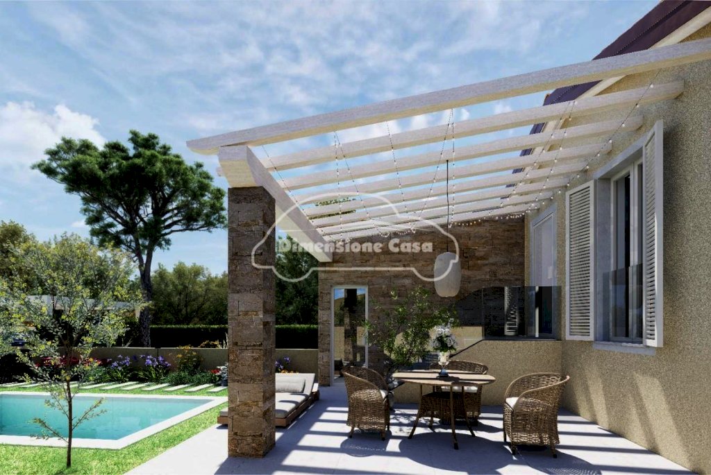 All’esterno, un pergolato elegante invita a vivere piacevoli serate all’aperto, mentre il giardino curato e ben distribuito offre la possibilità di realizzare una piscina privata.