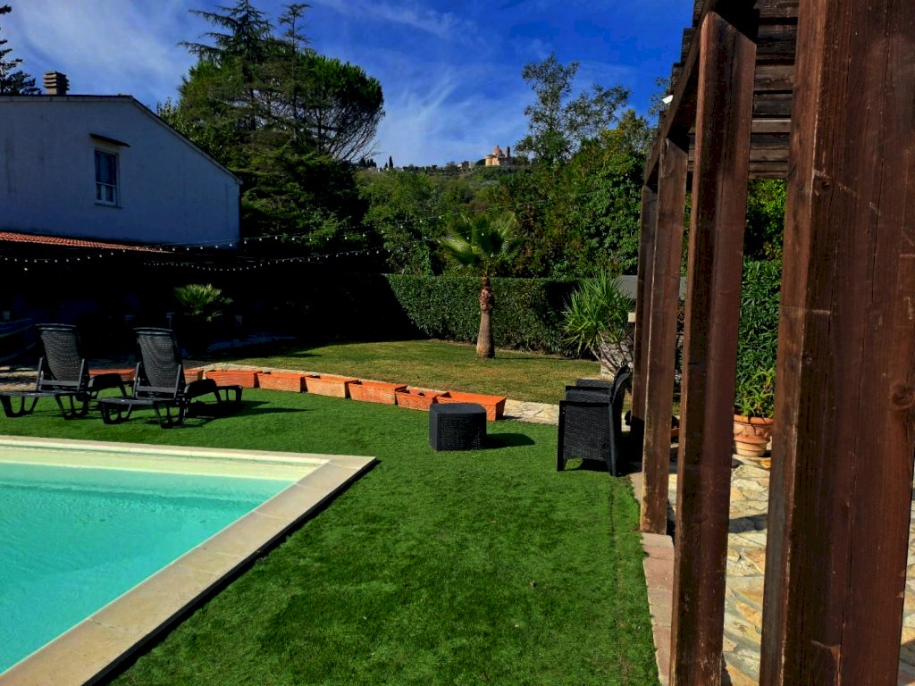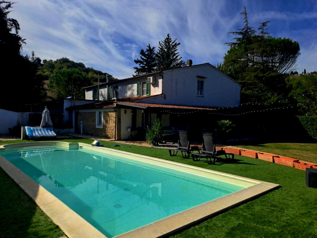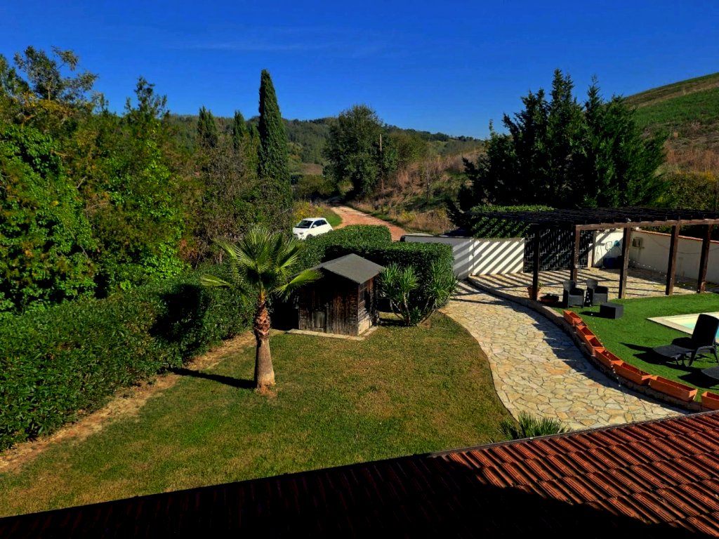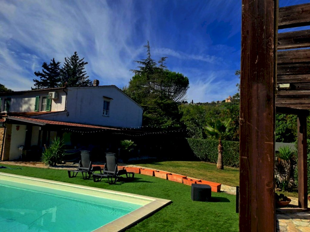 In vendita a Casciana Terme Lari, nel comune di Casciana Terme, splendida villa bifamiliare di 260 mq disposta su più livelli. con ampio giardino sul quale insiste una bella piscina. L'immobile, in ottimo stato, composto da 10 locali completamente ristrutturato con materiali di pregio si compone al piano terra da grandissimo salone con camino, cucina abitabile, studio, bagno, vano tecnico e scala di accesso al piano primo il quale è cosi composto disimpegno motte, camera principale con camino e cabina armadio, camera matrimoniale con cabina armadio, camera doppia e grande bagno con doccia e vasca idromassaggio, in tutto il piano è presente il pavimento in parquet. Al tutto vi è annesso ampio giardino molto curato con sovrastante piscina e doccia oltre a una grandissima tettoia in legno e completamente pavimentata in cotto con barbecue per cene all'aperto. La proprietà è completamente recintata. Prezzo: 390.000 Euro. [Classe energetica: B]