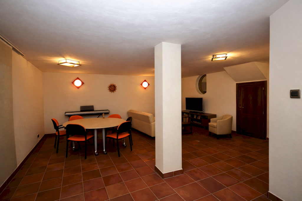 Al piano inferiore, una TAVERNA composta da due vani e un bagno oltre 2 vani CANTINA.