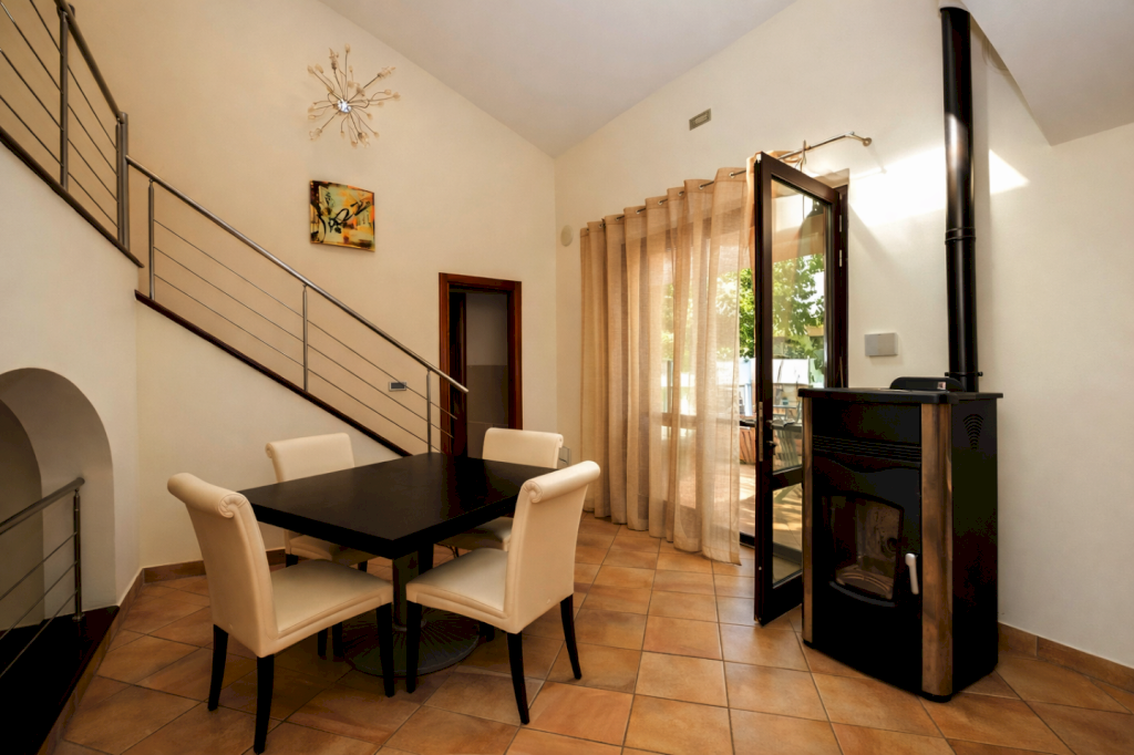 Completano la proprietà una DEPANDANCE di circa 80 mq rifinita come un 4 vani con bagno, con OTTIME RIFINITURE, un magazzino, una PISCINA PANORAMICA, circondata da un TERRAZZO ABITABILE e utile per ospitare amici e famiglia, un OLIVETA di 2000 mq con 40 PIANTE in produzione, un GAZEBO, un POZZO funzionante, un IMPIANTO da 10kw con BATTERIA DI ACCUMULO ,un climatizzatore in una delle camere matrimoniali, filo diffusione stero, infine un GARAGE di circa 15 mq.