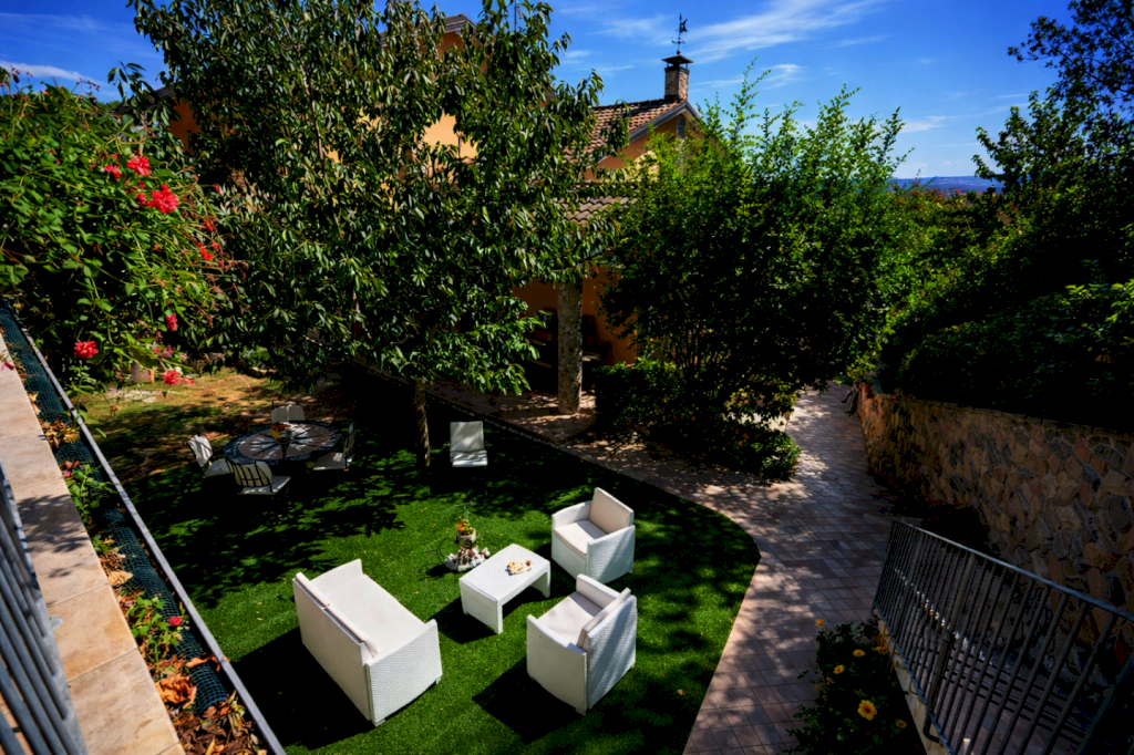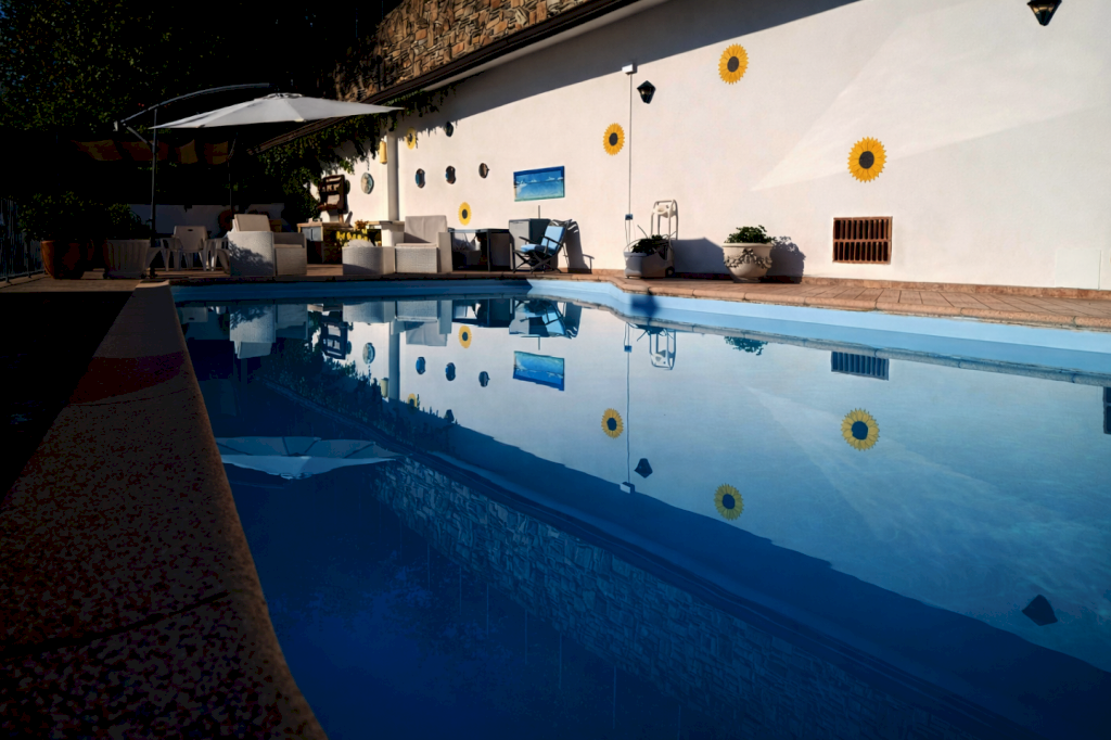 Completano la proprietà una DEPANDANCE di circa 80 mq rifinita come un 4 vani con bagno, con OTTIME RIFINITURE, un magazzino, una PISCINA PANORAMICA, circondata da un TERRAZZO ABITABILE e utile per ospitare amici e famiglia, un OLIVETA di 2000 mq con 40 PIANTE in produzione, un GAZEBO, un POZZO funzionante, un IMPIANTO da 10kw con BATTERIA DI ACCUMULO ,un climatizzatore in una delle camere matrimoniali, filo diffusione stero, infine un GARAGE di circa 15 mq.