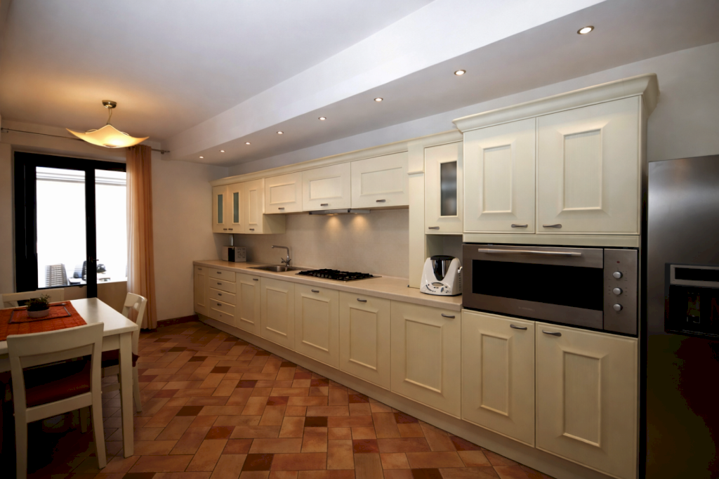 L'immobile si compone da ingresso in soggiorno, sala, cucina abitabile, due bagni e 3 camere da letto di cui 2 MATRIMNONIALI e una singola.