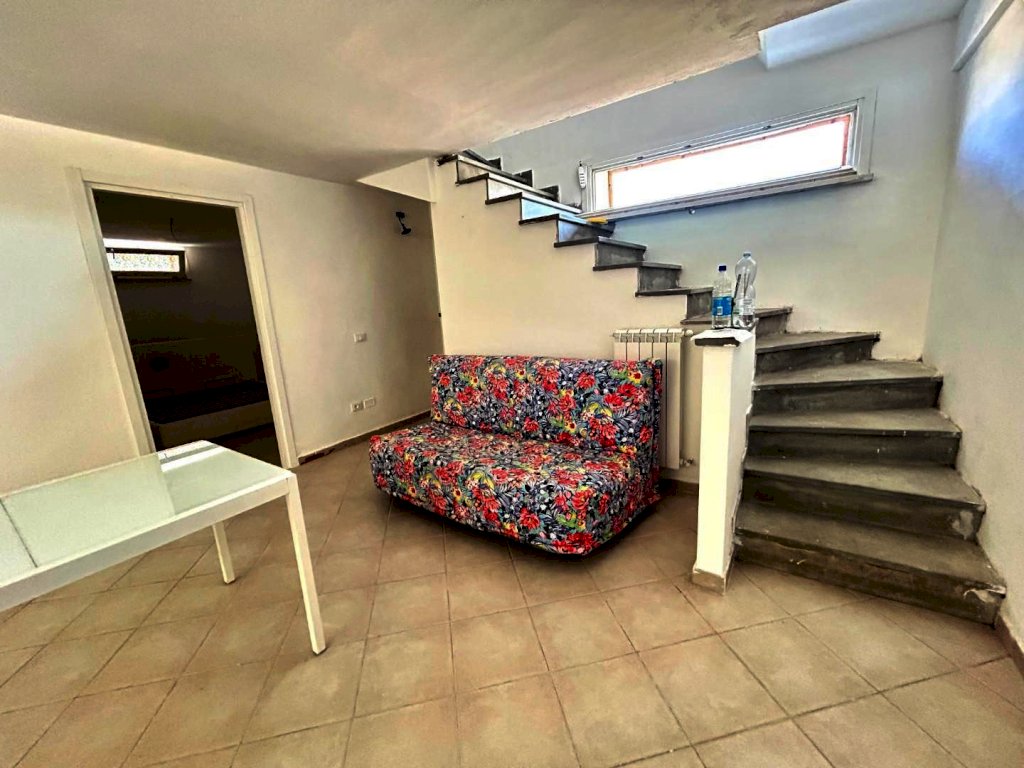 Piano terra rialzato: ingresso da terrazza su ampio soggiorno, cucina abitabile, disimpegno, camera matrimoniale e bagno finestrato.