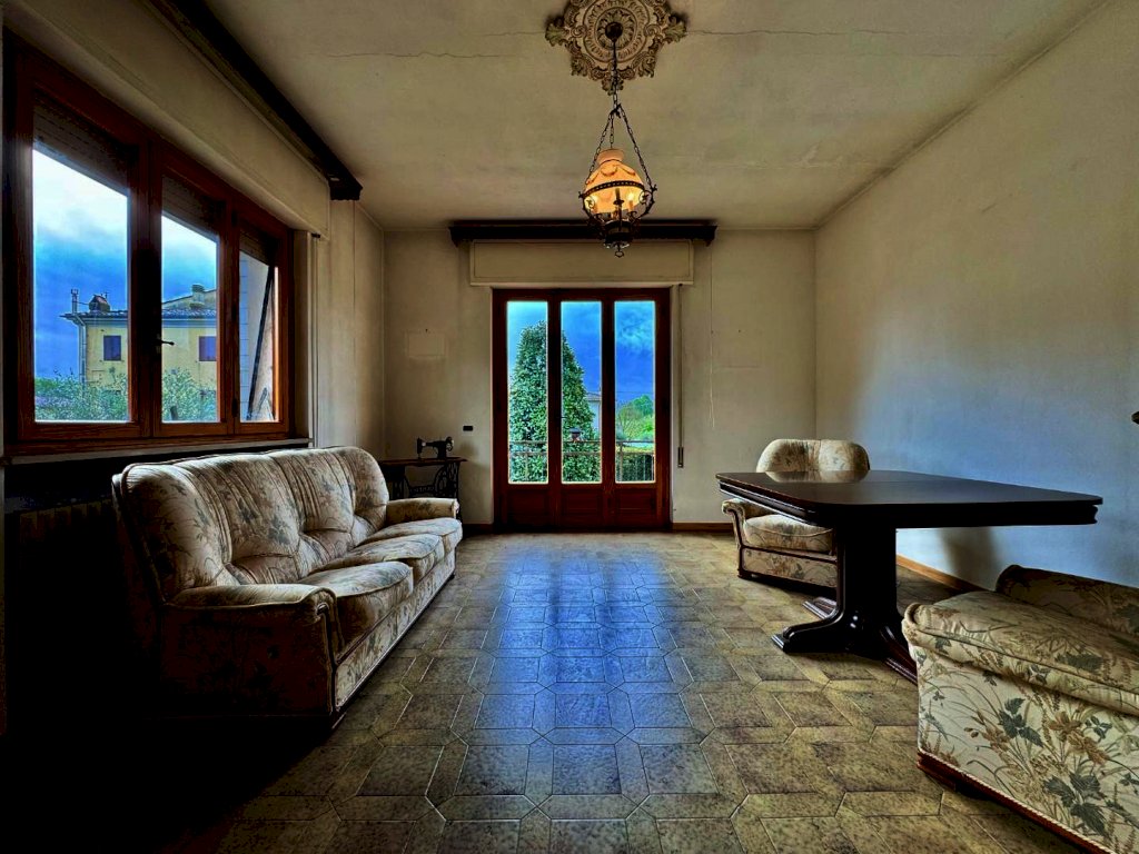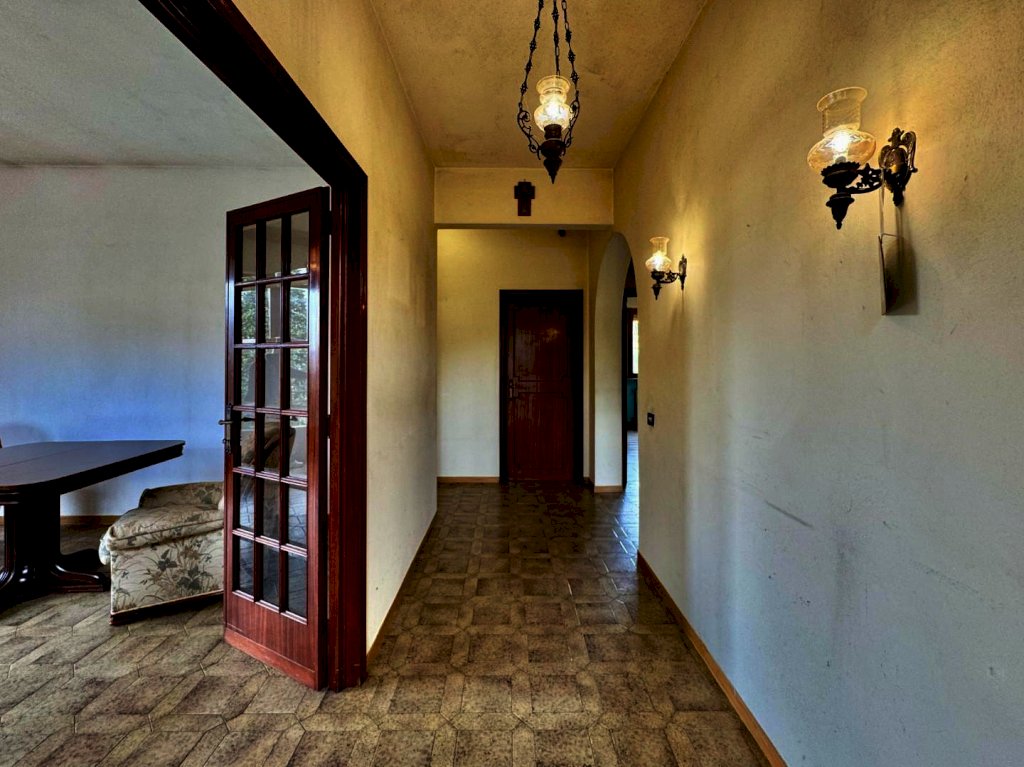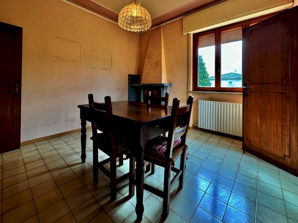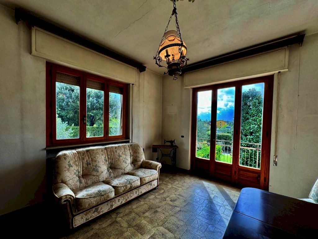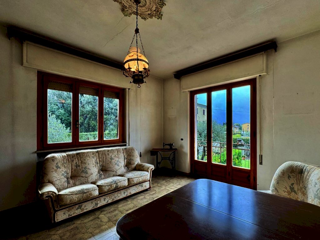 Mutigliano, RIF.IA6386 Appartamento in villa con ingresso indipendente posto acirca 6km di distanza dal centro di Lucca, in soli 10 minuti raggiungiamo questa zona ben servita, circondati da un panorama verdeggiante, lontano dai grandi palazzi della prima periferia. L'appartamento di cui parliamo è sito al piano primo di una villetta indipendente libera su quattro lati, con ingresso indipendente, corredata da un giardinetto privato e di facile gestione, oltre ad un posto auto. Si accede alla proprietà sia dal cancello carrabile che dal pedonale. L'ingresso è preceduto da un comodo porticato. La distribuzione degli spazi interni è quella tipica degli anni '70: ci accoglie in un disimpegno ampio, seguito da un un soggiorno con doppie vetrate e un balcone. La zona giorno continua nella sala da pranzo con caminetto, angolo cottura e accesso alla soffitta semi-praticabile. La zona notta si compone di due grandi camere matrimoniali, un bagno finestrato e una terza stanza che può servire da studio o da cameretta singola. Gli affacci sono gradevoli, la luminosità è uno dei pregi principali di questa soluzione perfetta per ospitare una famiglia di 4/5 persone.