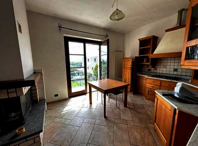 ingresso su zona giorno,cucina abitabile con termocamino 2 camere ,cameretta studio .