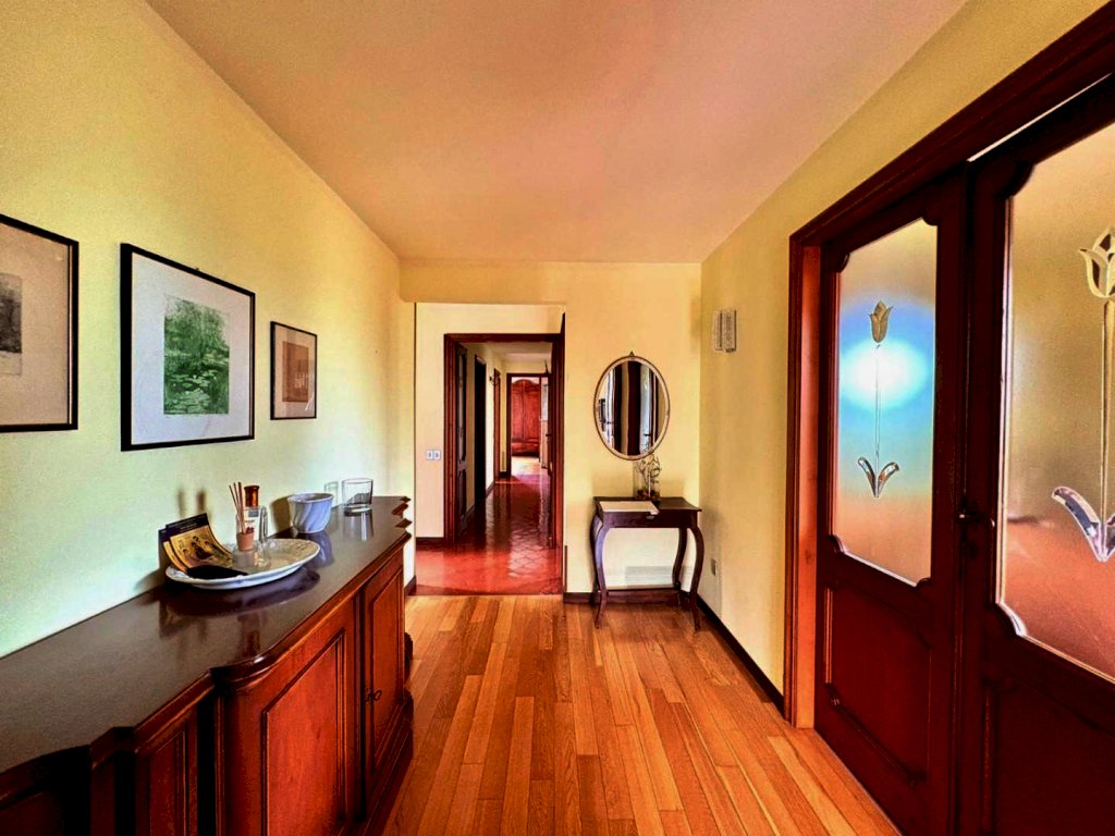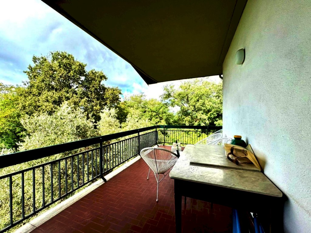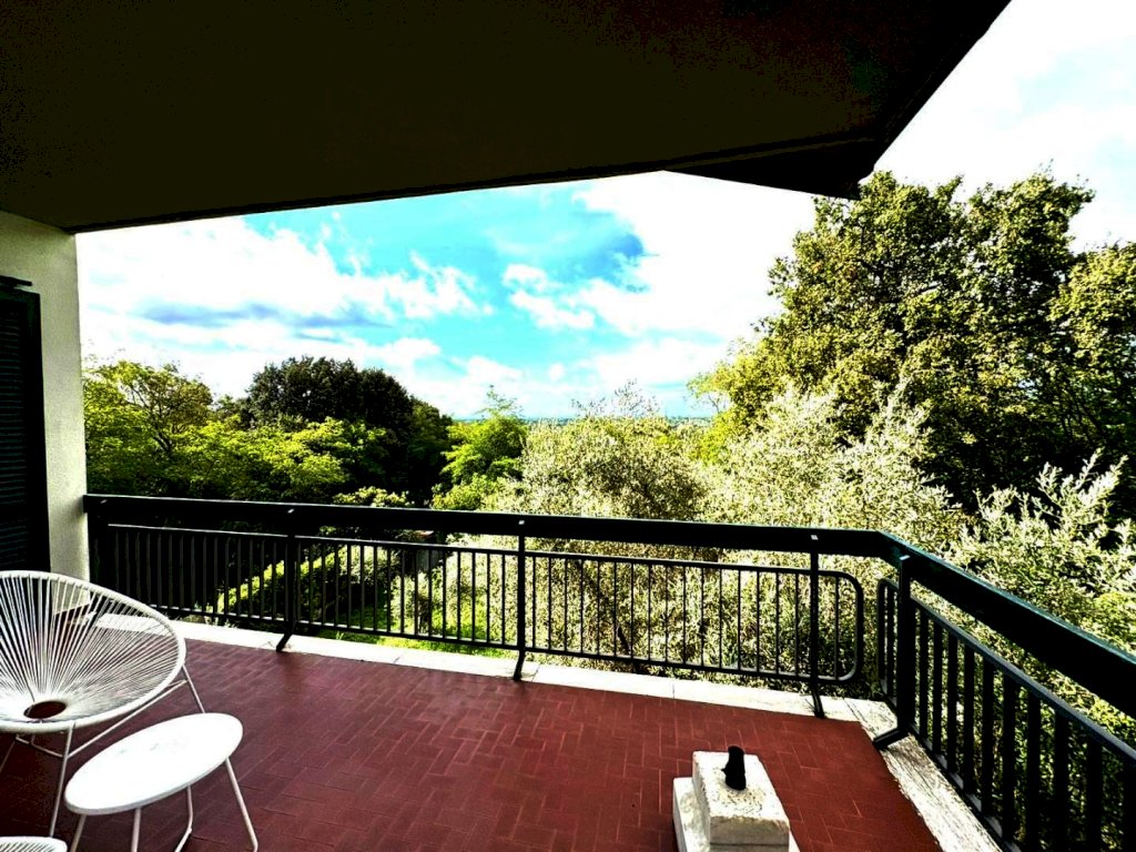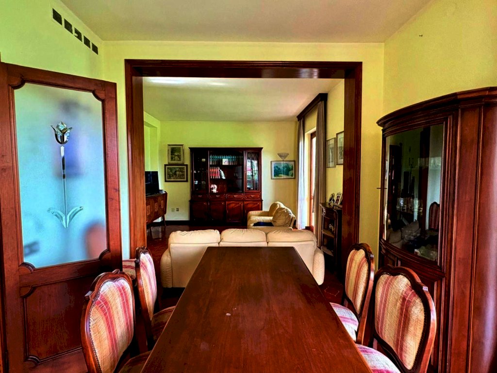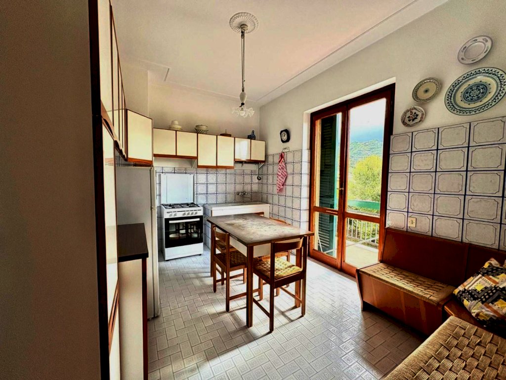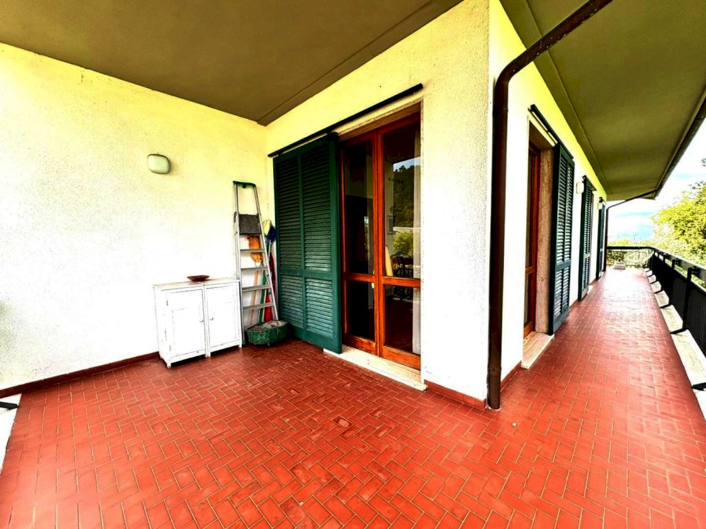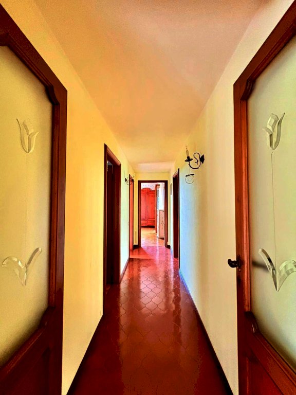 A 1000 metri dal centro proponiamo la vendita di un comodo e confortevole appartamento in casa bifamiliare disposto tutto su un unico piano per mq. 135, con bella terrazza coperta panoramica vista mare di mq. 34, magazzino a piano terra di mq. 50 e la proprietà esclusiva di mq. 450 di terreno. In buone condizioni di conservazione, internamente si compone da ingresso tradizionale, soggiorno con pranzo, cucina abitabile, disimpegno notte, tre camere matrimoniali, due bagni. Al piano terreno il magazzino all'interno del quale è stato ricavato uno studio.