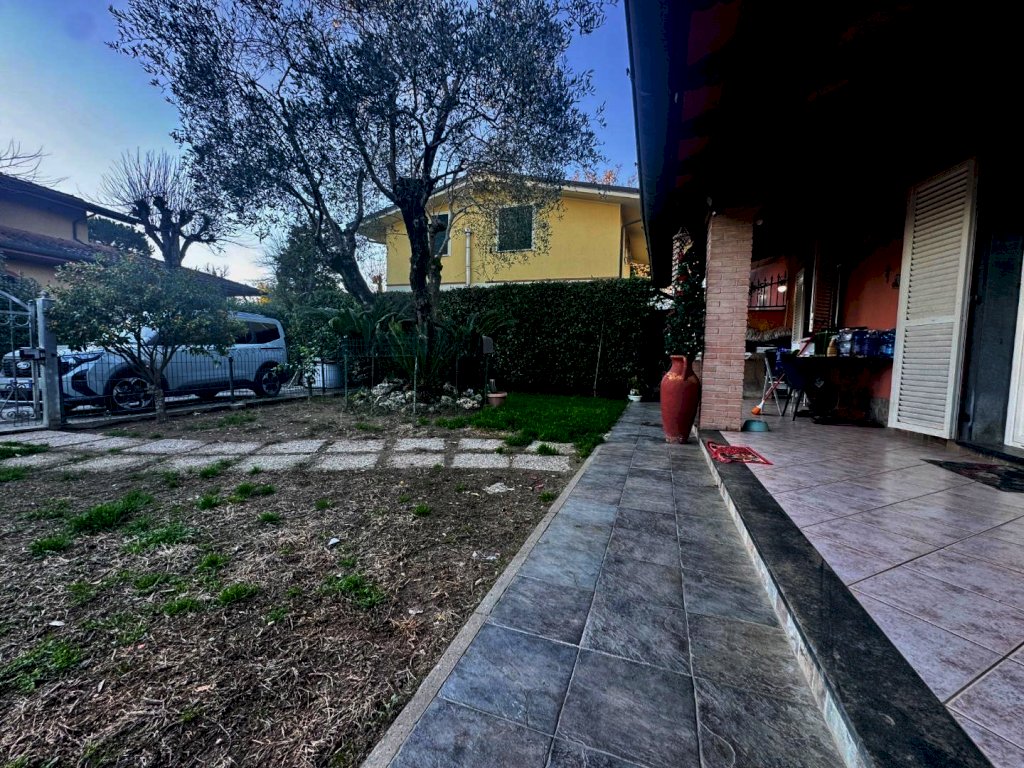Poveromo – A circa 800 metri dal mare, in zona tranquilla e residenziale, si vende porzione di villetta bifamiliare disposta su unico piano terra. L’immobile è circondato da un curato giardino privato su tre lati e si compone di ampio soggiorno con cucina a vista, disimpegno notte, camera matrimoniale, camera doppia, spazioso bagno e possibilità di ricreare un secondo servizio.