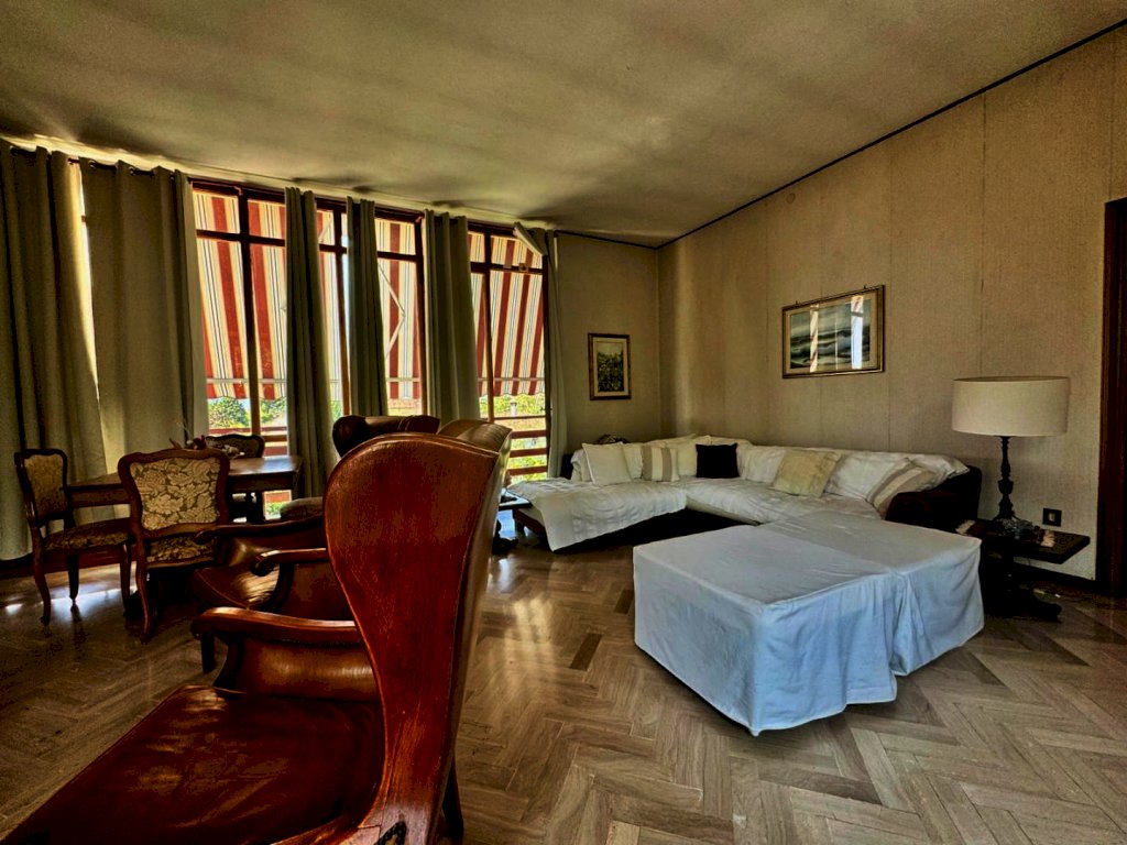 L’abitazione si compone di ingresso, ampio e luminoso salone valorizzato da importanti librerie in legno massello, cucina abitabile, tre camere comode, due bagni e balcone.
