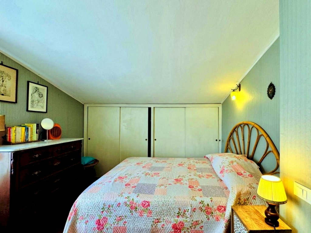Salendo al piano superiore troviamo la zona notte, composta da ambienti mansardati e un bagno finestrato con doccia.