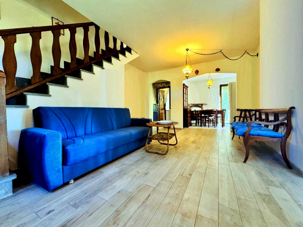 L'abitazione si sviluppa su due livelli: piano terra e primo piano mansardato. Al piano terra troviamo una zona giorno ampia e accogliente, con grande soggiorno con camino, collegato a un tinello luminoso. La cucina, frutto di un ampliamento realizzato durante la ristrutturazione, è attrezzata con lavastoviglie e con accesso diretto all'esterno, rendendola perfetta per la vita quotidiana e per momenti conviviali all'aperto. Completa il piano un bagno di servizio e un pratico pilozzo in ceramica sul retro dell'abitazione.