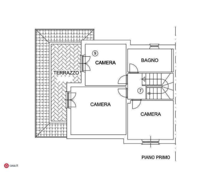 Al piano primo si trovano; 3 camere matrimoniali servite da un bagno con vasca idro e doccia.