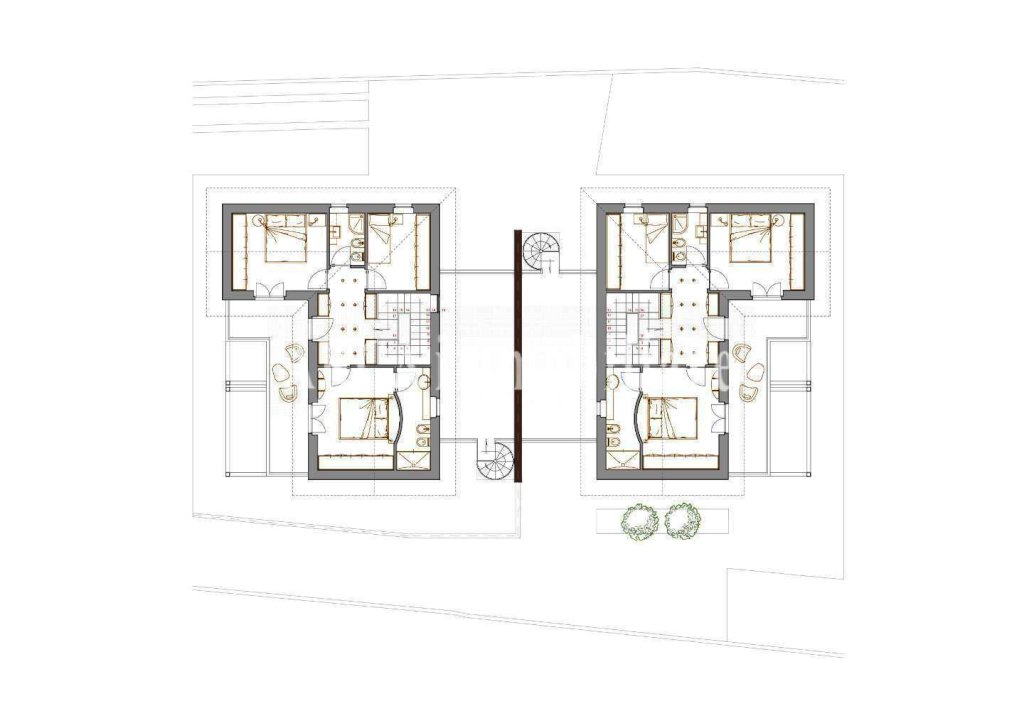 Garage. Internamente le ville hanno stessa suprficie mentre il giardino uno รจ di 400 e l'altro 1.400 mq.. Riscaldamento a pavimento e aria condizionata.