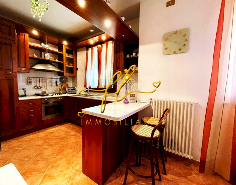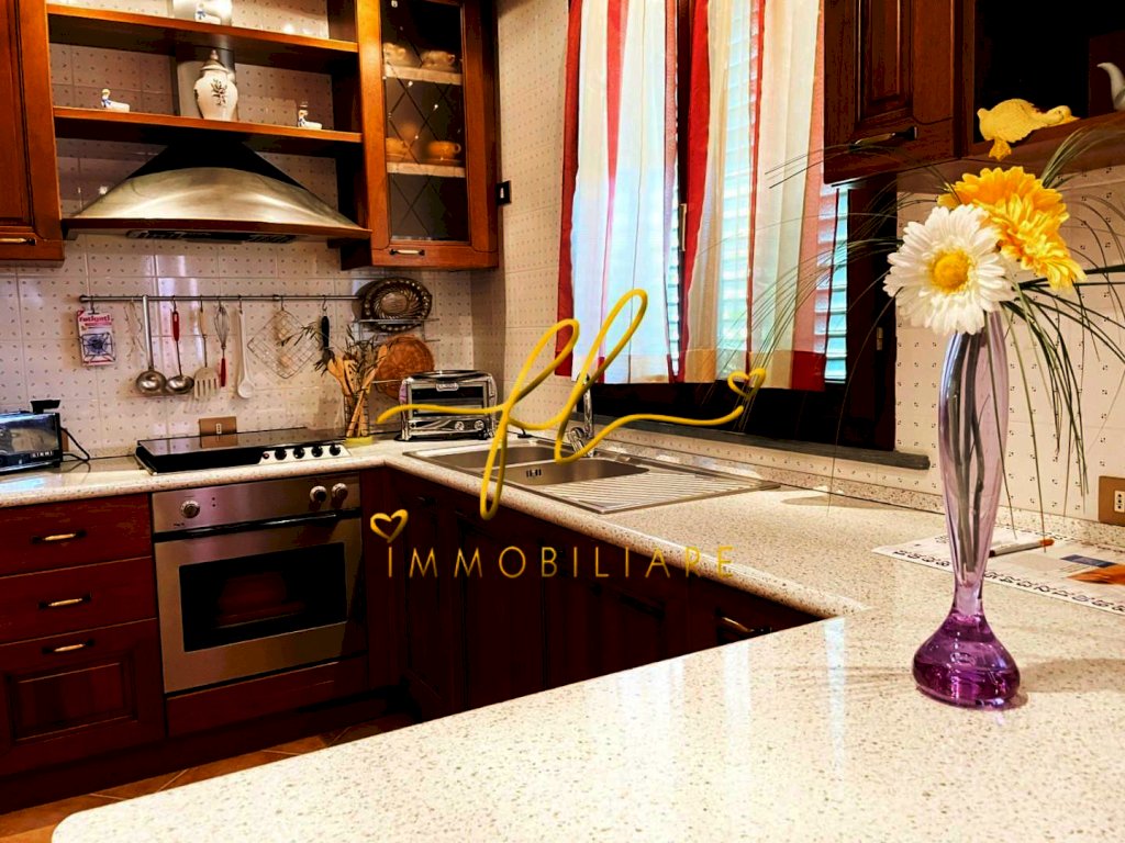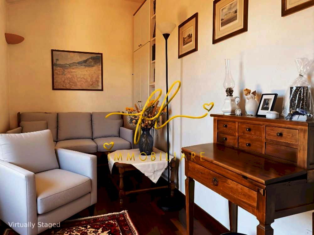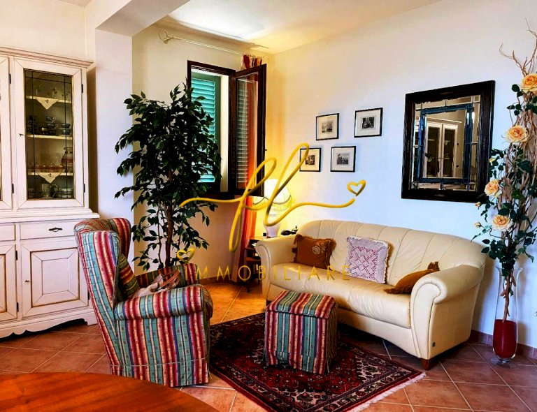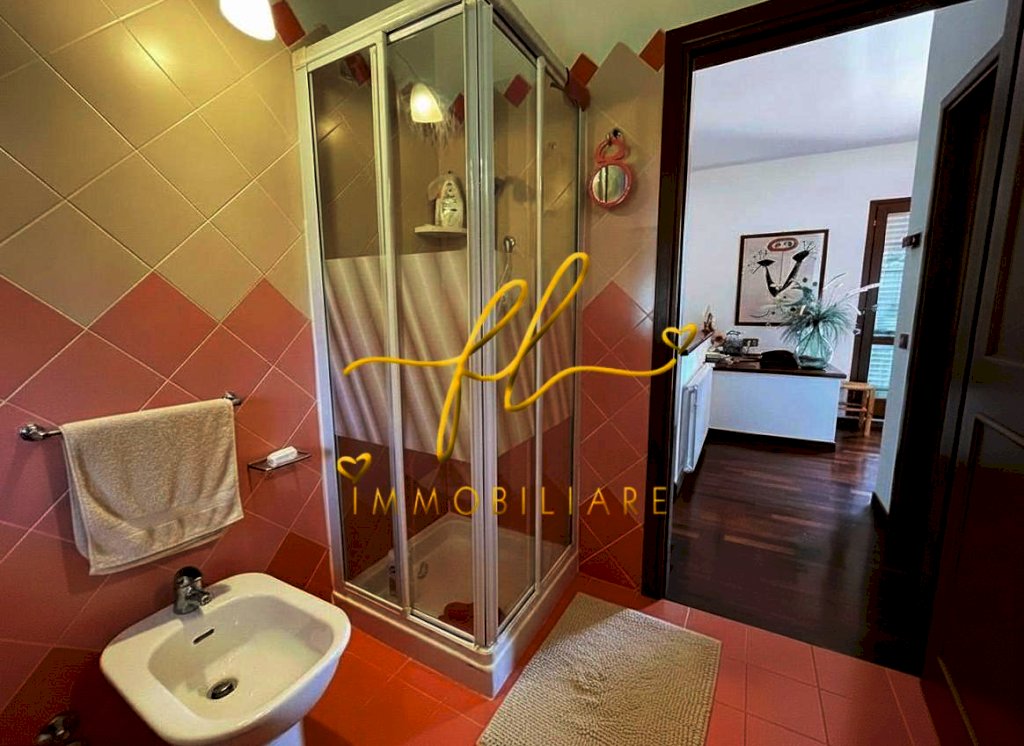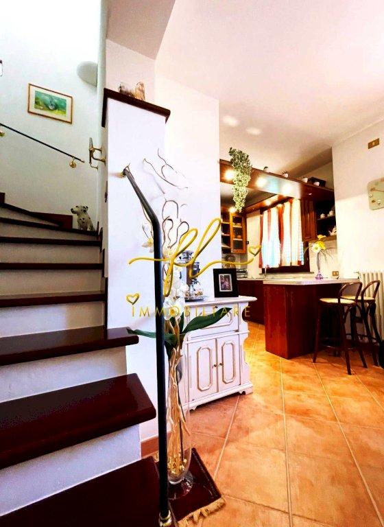 La casa, luminosa e spaziosa, si sviluppa su tre livelli offrendo vari ambienti . Il piano terra della villetta, rialzato e collegato al giardino tramite comoda scala esterna di pochi gradini è così distribuito: ingresso principale su salottino e zona pranzo giorno rivolta a sud, cucina con dispensa, ampia camere matrimoniale, bagno finestrato con doccia. Da scala a giorno si accede al primo piano dell'abitazione composto da ulteriore camera matrimoniale, secondo bagno finestrato anch'esso con doccia, ulteriore locale/studio da cui si accede da ampia porta a vetri su splendida terrazza a tasca da cui si gode uno splendido panorama sulle colline toscane. Al piano seminterrato, collegato da scala interna completano la proprietà taverna con accesso diretto al giardino, lavanderia, cantine e garage con accesso carrabile da strada laterale la proprietà.