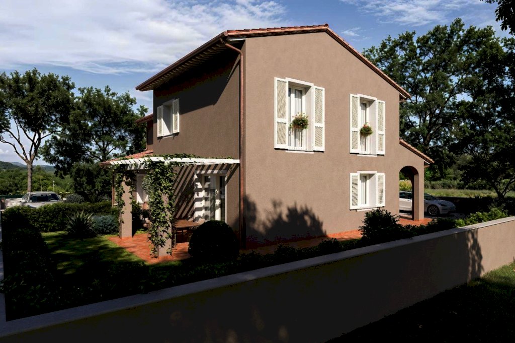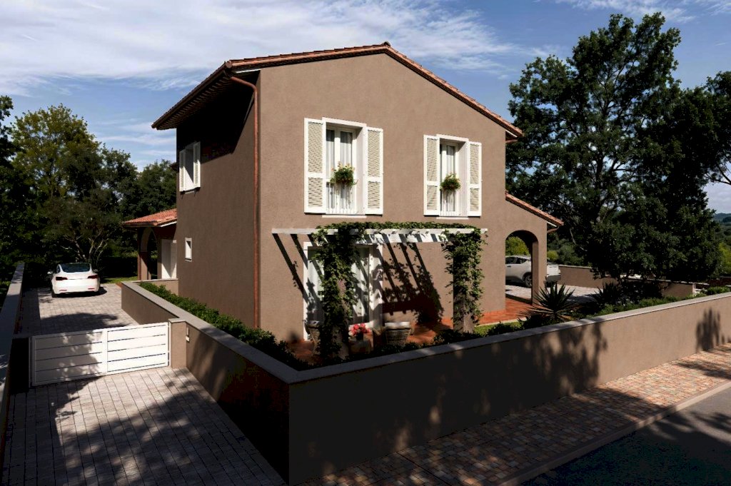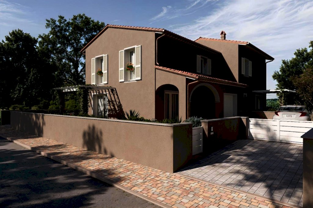 PONTEDERA-IMMEDIATA PERIFERIA-In vendita a Pontedera, in zona esclusivamente residenziale splendida villetta bifamiliare in corso di costruzione, pronta per l'autunno 2026. Questa elegante proprietà si sviluppa su una superficie di 145 mq, oltre a garage e giardino per un totale di 171Mq.AL Piano Terra loggia di ingresso ,grande soggiorno, cucina-pranzo che si affaccia su un bellissimo pergolato esterno, comodo ripostiglio, un bagno completo con finestra, ed un grande garage di 21Mq. comunicante con l'abitazione. Al piano primo due camere matrimoniali, una camera singola, il disimpegno ed un grande bagno finestrato. All'esterno un grande giardino con posti auto. Classe energetica A4. Caratteristiche costruttive e tecnologiche avanzate . POSSIBILITA DI PERSONALIZZAZIONE .Per informazioni e visite contattare CLAUDIO RICCI Tel.3400763171 Rif RC.5903