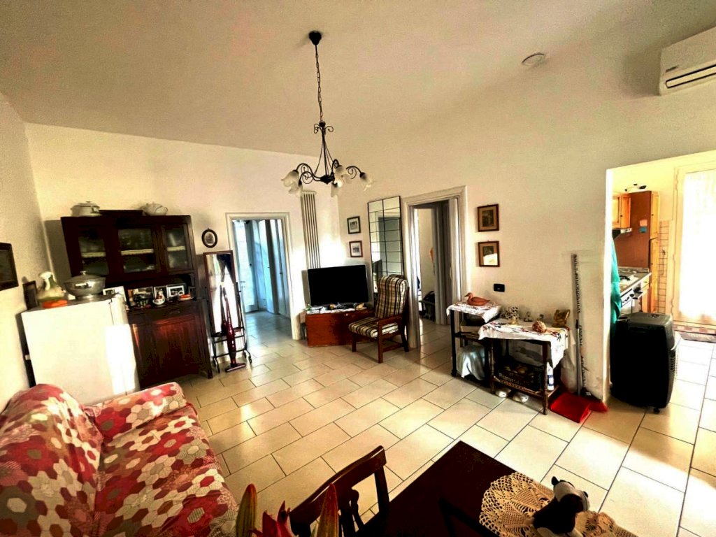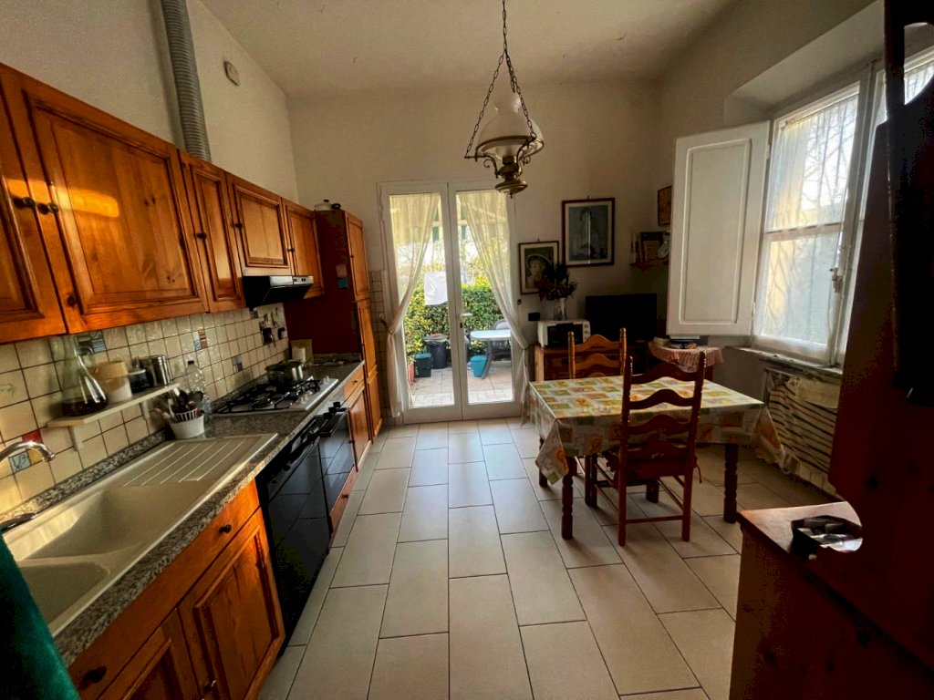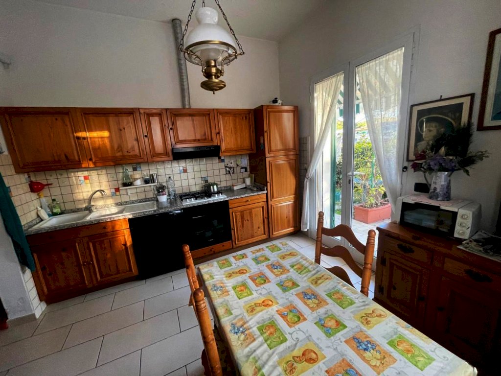 Salotto soggiorno, cucina abitabile direttamente con uscita in giardino, due camere e bagno recentemente rinnovato.