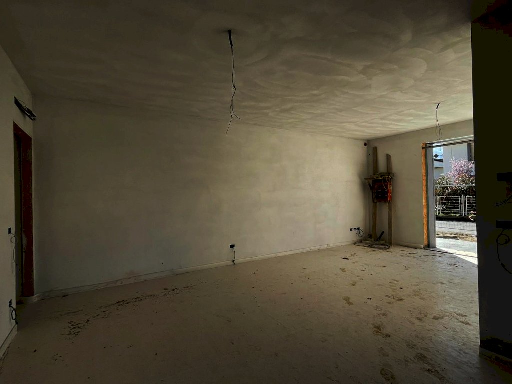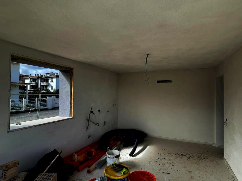 Situata in una nuova e tranquilla zona residenziale, proponiamo in vendita una porzione di villa bifamiliare in fase di costruzione. Realizzata con materiali ecosostenibili e tradizionali, è dotata di impianti progettati per ridurre i costi operativi. Grazie all'installazione di pannelli fotovoltaici e impianti ibridi, insieme a un efficace isolamento termico, la casa avrà una classificazione energetica A4. L'abitazione, di mq. 146 circa (con un sottotetto non abitabile di mq. 33 circa), include un garage e un giardino privato di mq. 203 circa, parzialmente pavimentato e con posto auto esterno. Al piano terra, un ingresso coperto da pergolato conduce a un'ampia zona soggiorno/pranzo/cottura, affacciata sul giardino sotto un secondo pergolato. Un disimpegno collega questa area al bagno di servizio e al garage. Al primo piano, la zona notte comprende una camera matrimoniale con bagno privato, una cameretta, un disimpegno e un ulteriore bagno. Il sottotetto ospita un vano tecnico per gli impianti fotovoltaici. La casa sarà consegnata completa di tutte le certificazioni necessarie, attestato di abitabilità e comfort moderni: rivestimenti in marmo e legno, pavimentazione antiscivolo, riscaldamento a pavimento, impianto TV satellitare, infissi in legno laccato, portoncino blindato, tapparelle elettriche e tinteggiature antimuffa.