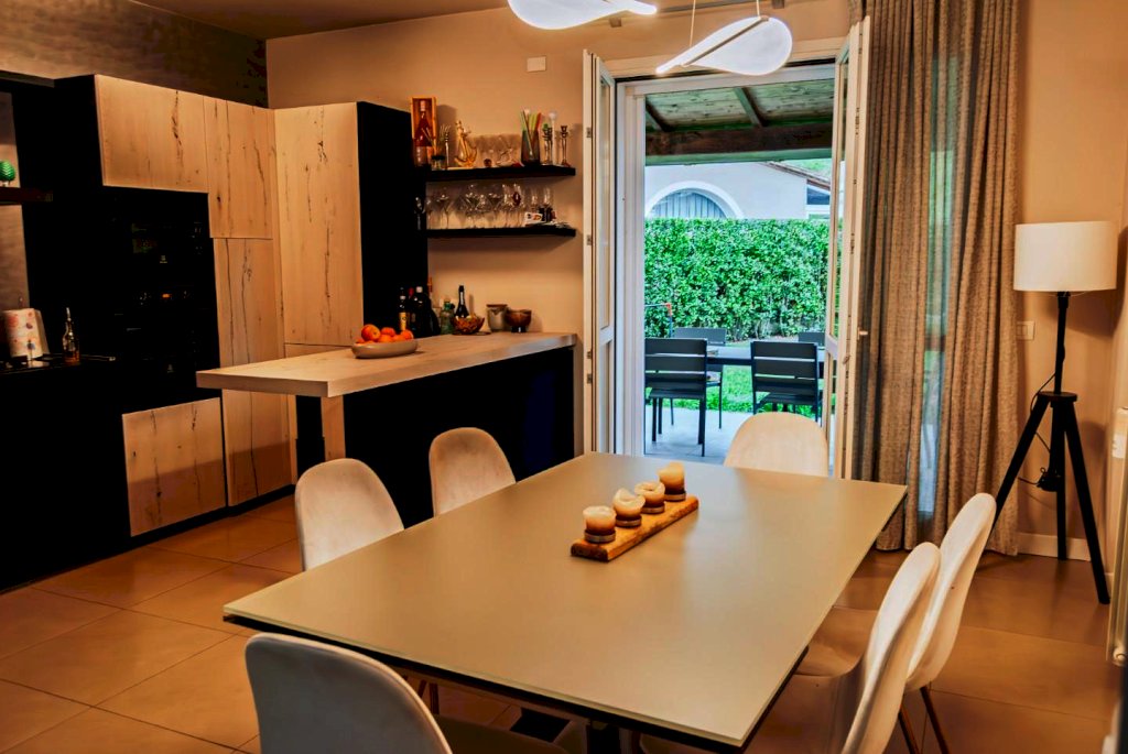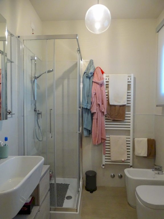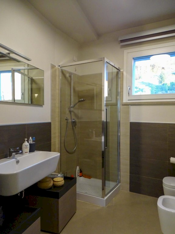 In una villa bifamiliare di recente costruzione, situata in una zona residenziale tranquilla, proponiamo in vendita un'abitazione su più livelli, con una superficie totale di circa 170 mq. Completa di un garage di circa 39 mq e un giardino esclusivo di 300 mq. L'immobile offre un portico coperto di 15 mq e una veranda di 15 mq con ampie vetrate e copertura automatizzata. Al piano terra si trovano l'ingresso-soggiorno con veranda, una cucina-pranzo con accesso al portico, un bagno con doccia e un ripostiglio. Al primo piano, la zona notte comprende due camere matrimoniali (una con bagno privato), una cameretta adibita a guardaroba e un secondo bagno. Infine, all'ultimo piano, una mansarda-studio. Il garage, con lavanderia, è situato al piano interrato, accessibile tramite scala interna e rampa condivisa con l'altra unità della bifamiliare.