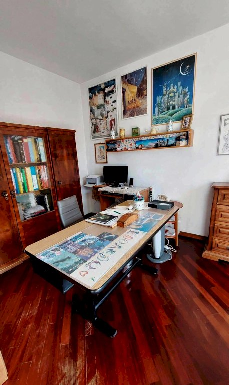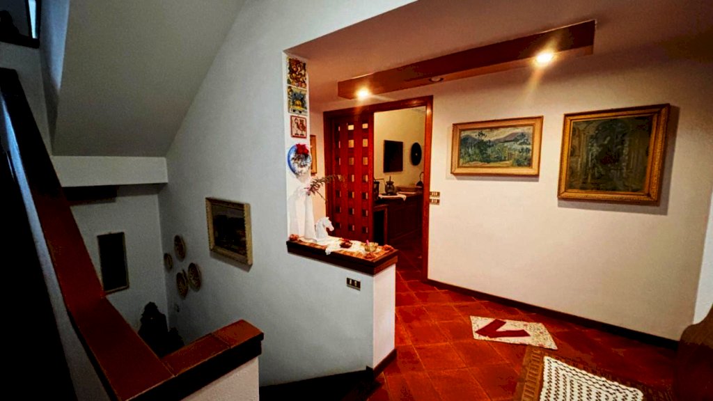 PIANO SUPERIORE: Collegato da scala in legno, vi si sviluppa la zona notte, sempre su piani sfalsati, dove si trovano 2 camere matrimoniali delle quali una dotata di balcone e bagno privato, 1 studio e armadio a muro oltre a due camere grandissime con affaccio panoramico sulla Verruca, ciascuna con doppia finestra che all’occorrenza possono ambedue essere suddivise in due camerette, ed ulteriore bagno;
