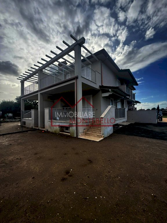 - Primo piano: Camera matrimoniale con balcone, stanza armadi (utilizzabile come seconda camera), ampia terrazza abitabile con pergola, bagno a servizio della zona notte.