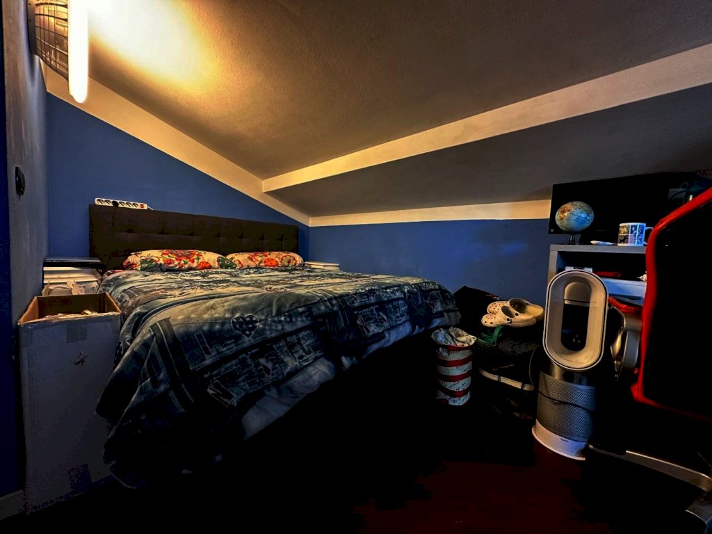 La zona notte, collocata al primo piano, comprende due camere entrambe dotate di balcone privato, perfette per sfruttare momenti di relax all’aperto. Il secondo bagno, anch’esso finestrato, è ampio e completo di doccia e vasca, offrendo comfort e funzionalità per tutta la famiglia. Proseguendo verso l’alto si raggiunge il piano mansardato, attualmente utilizzato come ulteriore camera ma estremamente versatile: si presta infatti a diventare studio, stanza giochi, ambiente hobby o una comoda suite per gli ospiti.