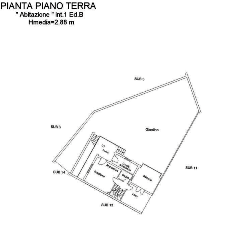 un balcone e un portico al piano terra; una camera, un balcone e un locale soffitta al piano primo, collegati tra loro da scala interna, con annesso giardino pertinenziale.