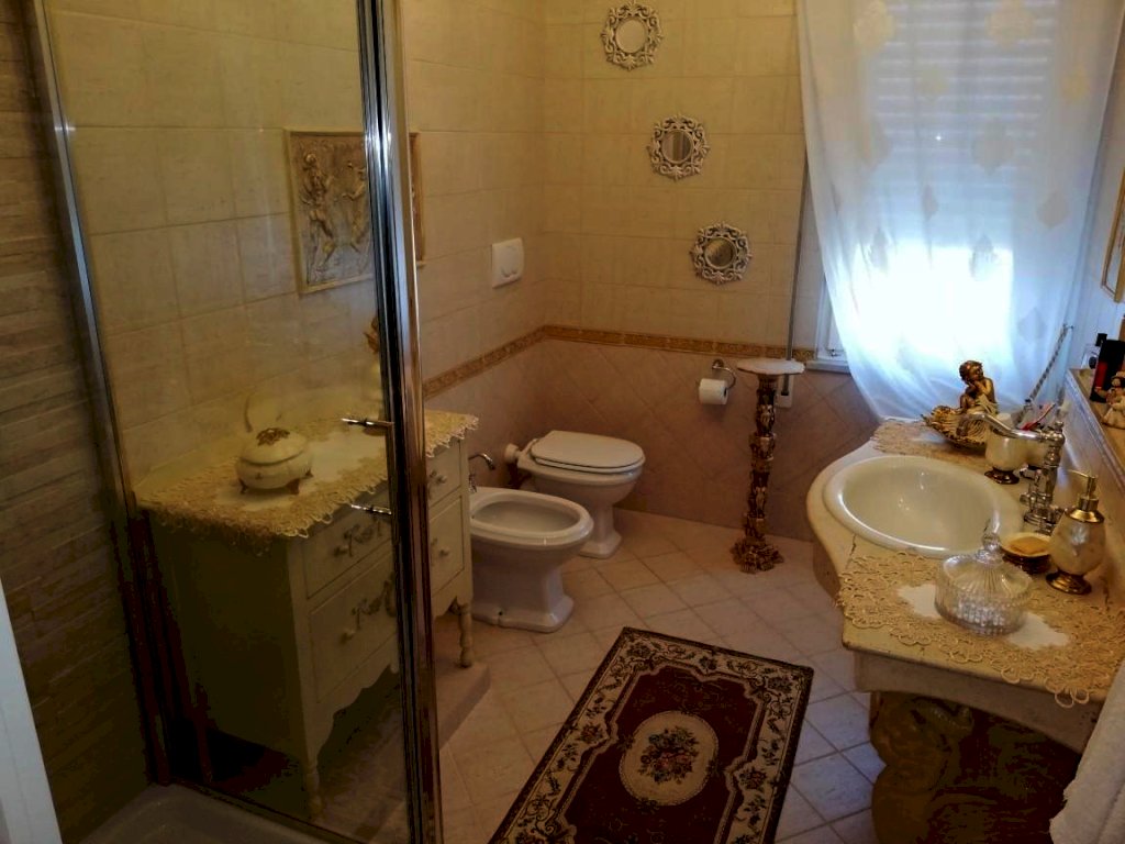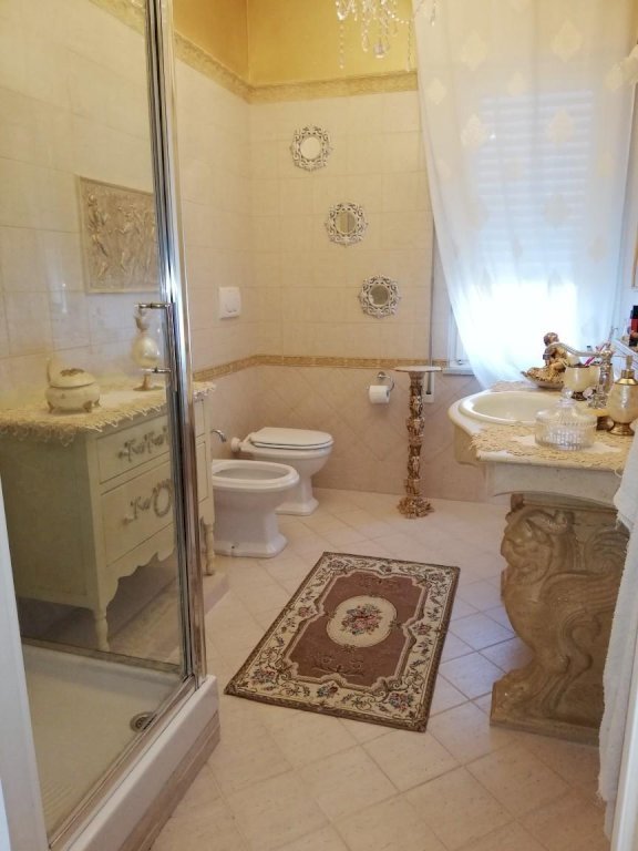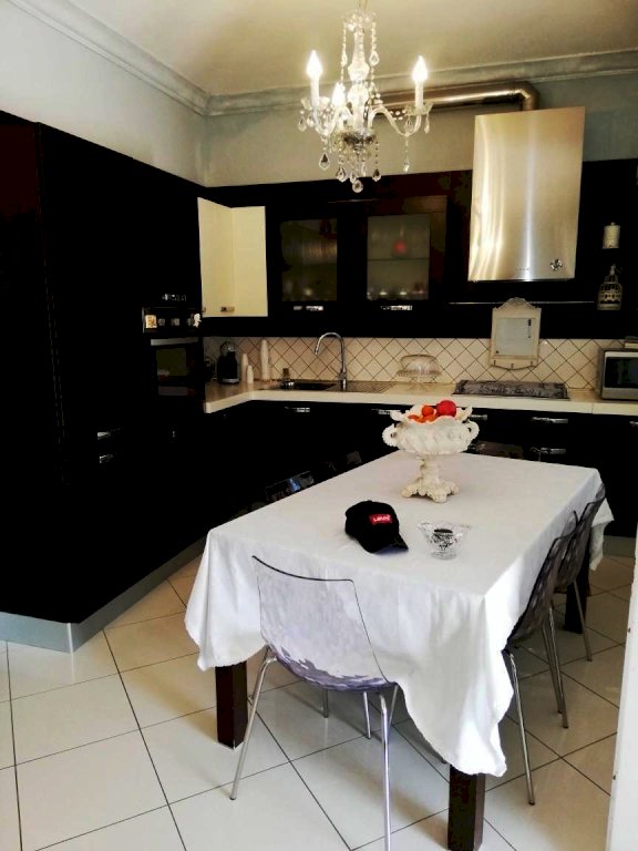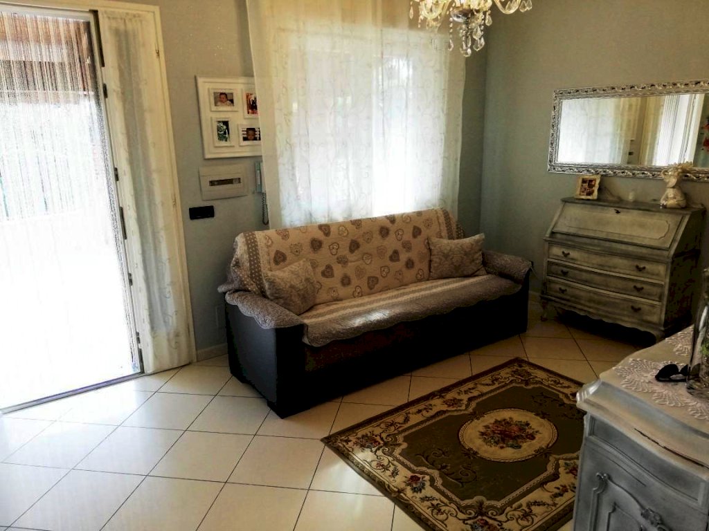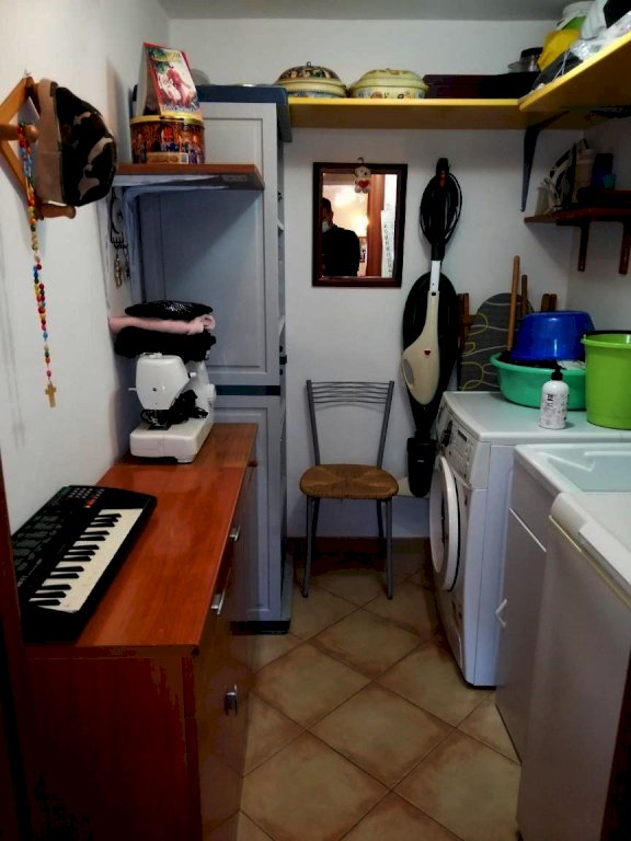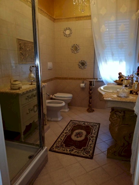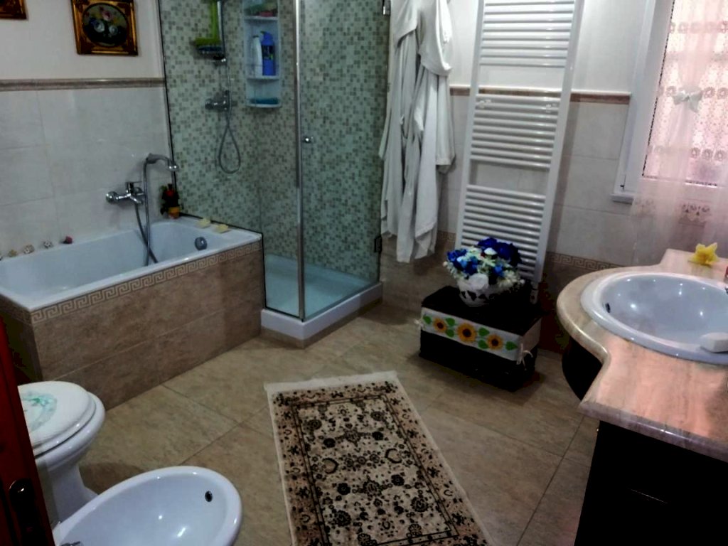 Al piano terra, un appartamento di 5 vani offre un soggiorno con cucina a vista, due camere matrimoniali, una cameretta e doppi servizi. Il piano seminterrato, accatastato come fondo/cantina, presenta un soggiorno, cucinotto, camera matrimoniale, bagno e un ampio studiolo. La villa è circondata da un'area esterna interamente recintata, parte a verde e in parte pavimentata, con vari posti auto e due garage fuori terra.