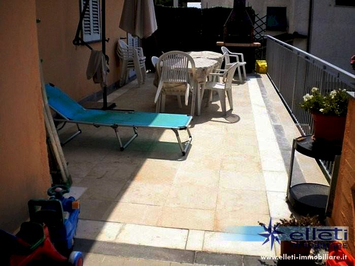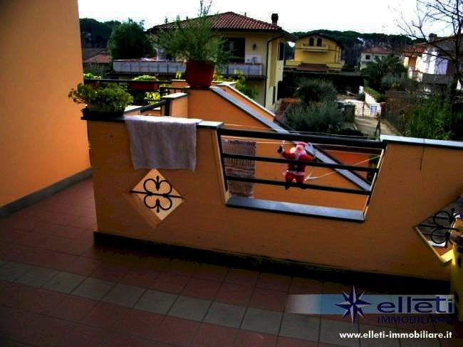 Cinquale. Si vende appartamento in ottime condizioni e di grandi dimensioni (150 mq oltre a sottotetto e terrazza pranzabile) posto al primo piano e a solo 1 Km dal mare. Corredato di corte piastrellata al piano terra di circa 100 mq per due posti auto. Internamente risulta composto da ampio ingresso con scala di accesso al piano sottotetto, cucina abitabile, grande soggiorno con terrazza, disimpegno, tre camere matrimoniali e due bagni a piano primo; Ampio locale mansardato a piano sottotetto con bagno. Terrazza pranzabile di circa 35 mq. Classe energetica F – IPE 149,56 kwh/mq anno. Rif. M228.